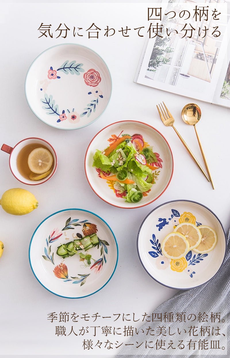 4種類の華やかな絵柄が、あなたの食卓を美しく彩る