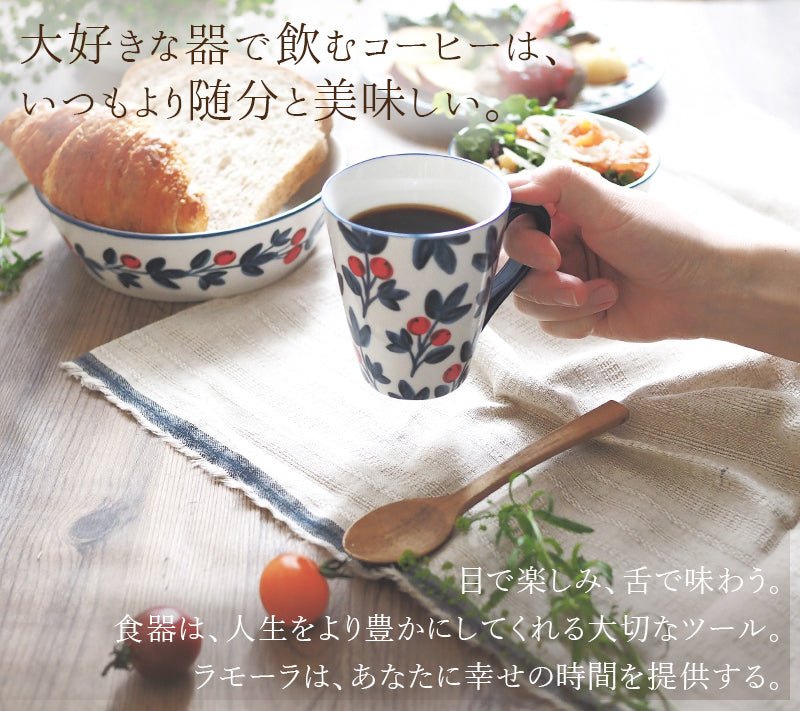小ぶりで女性の手にとても馴染みやすいフォルムのマグカップ。