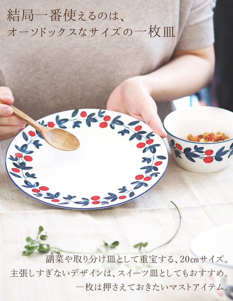 副菜や取り分け皿として大活躍する、20㎝サイズのお皿。